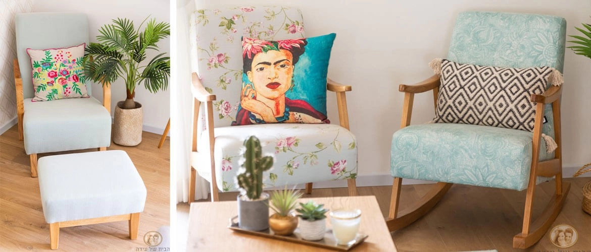 ליצירת מראה הרמוני, בחרו בבד זהה לכורסה ולכרית על הספה