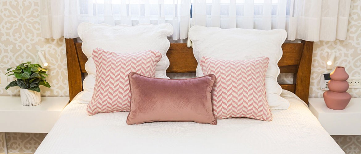 צרו עניין בכריות, על ידי בחירה בצבעים וטקסטורות שמשתלבים יחד