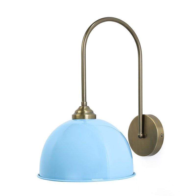 זרוע פליז בצירוף אהיל מתכת בצבע תכלת מבחוץ ולבן מבפנים
