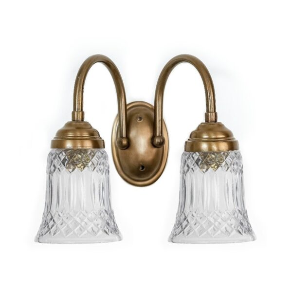 בעלת בסיס בצבע ברונזה המתפצל לשתי זרועות מעוגלות, בקצותיהן שני אהילי זכוכית יפים