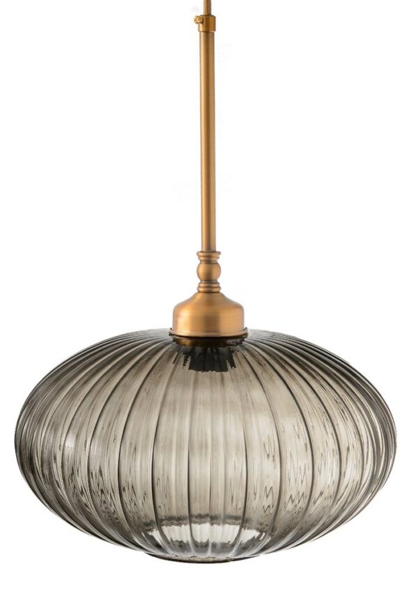 גוף תאורה פראדו גריי , וכוס זכוכית אובאלית עם פסים , חובק מאורך וכבל בד זהב.
