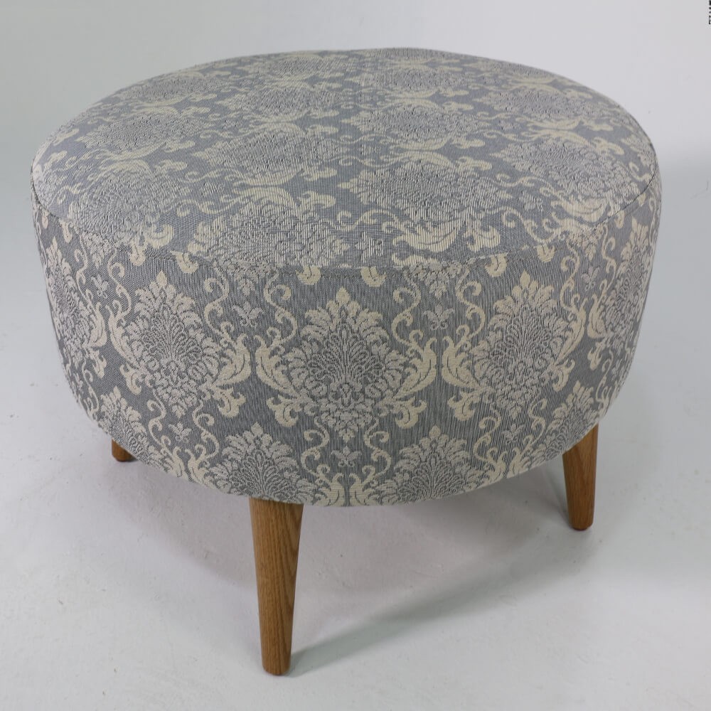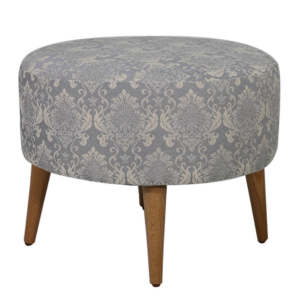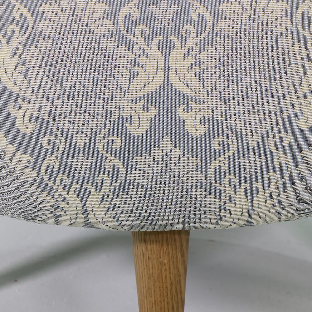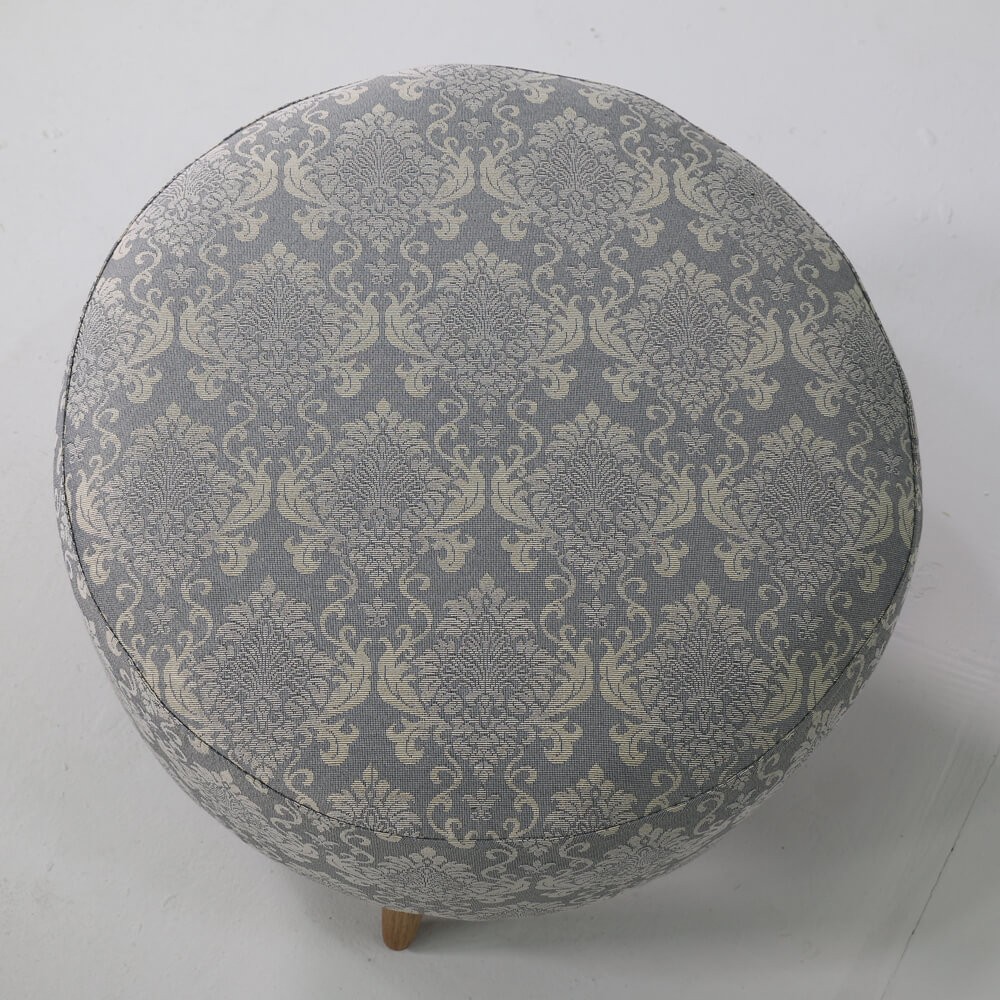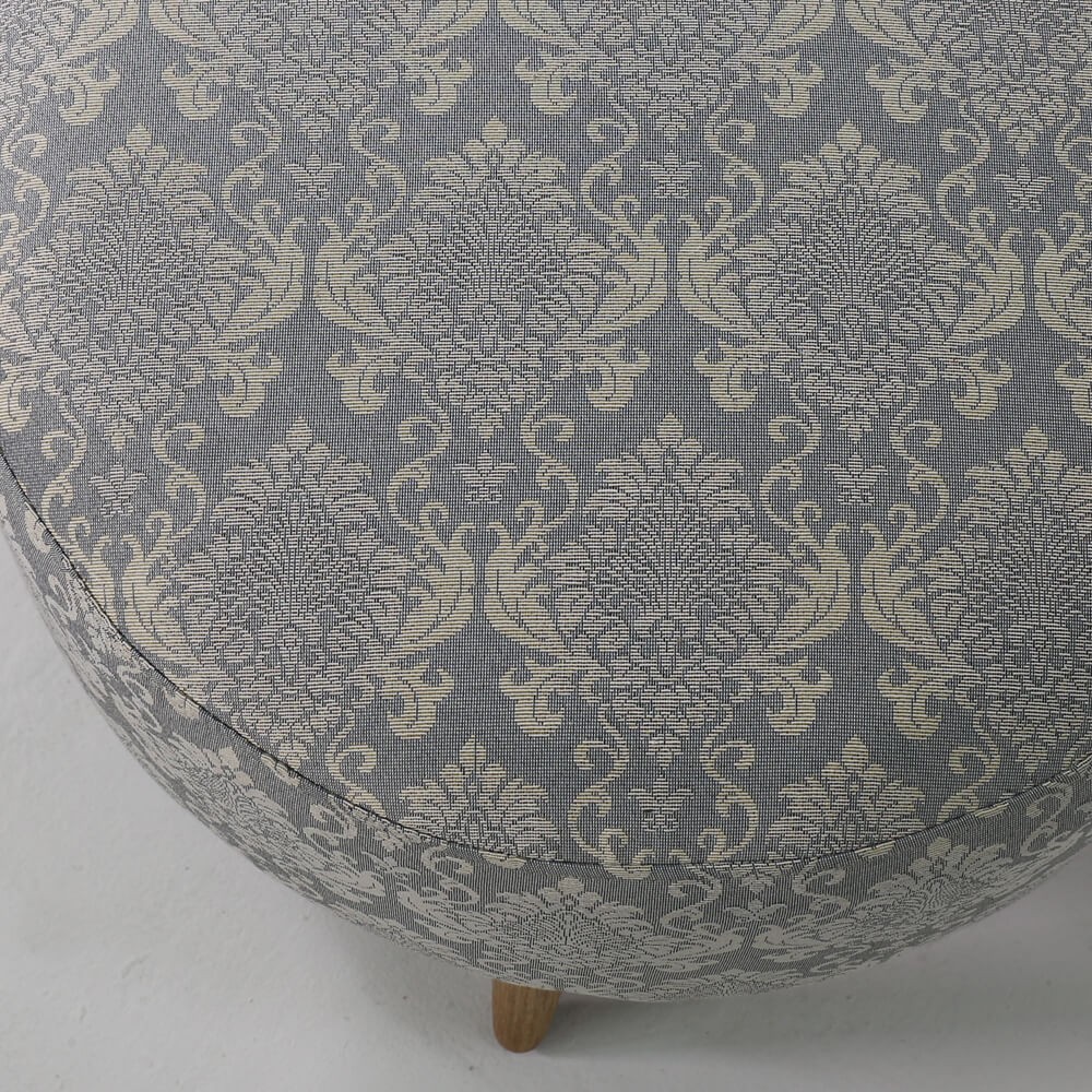 הדום עגול, מרופד בד ג'קארד בדוגמת מדליונים עדינים בגווני תכלת בהיר