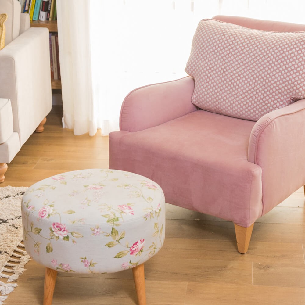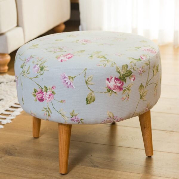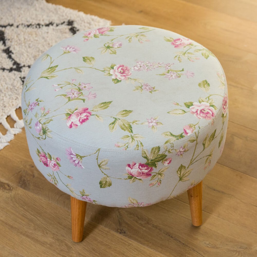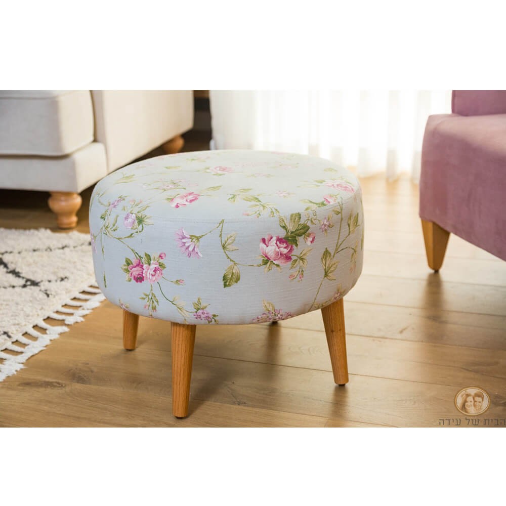 הדום עגול מרופד בד בדוגמת פרחים עדינים ועלים