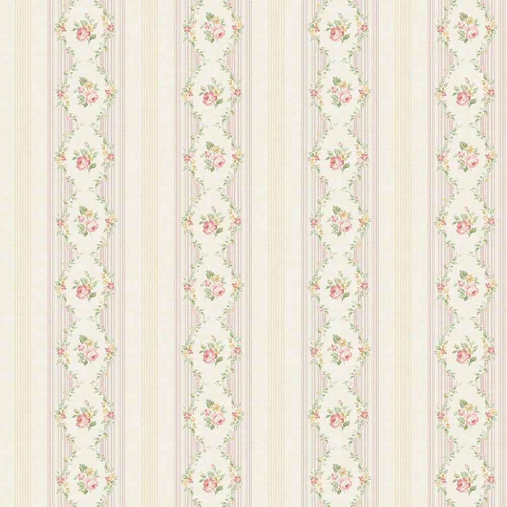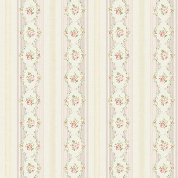 טפט פרחים ופסים בגווני ורוד, בז׳ וירוק