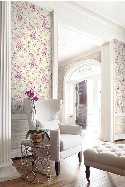 טפט ורדים בגווני סגול, אפור וירוק