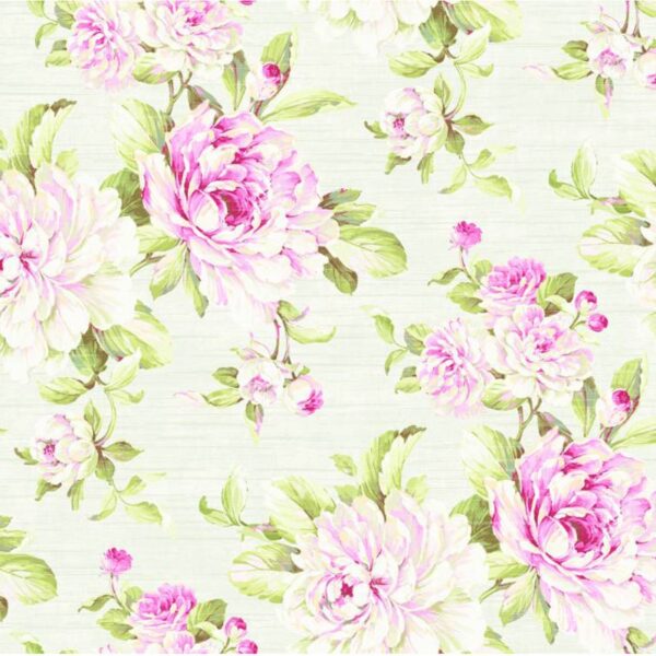 טפט ורדים בגווני ורוד, ירוק ואפור