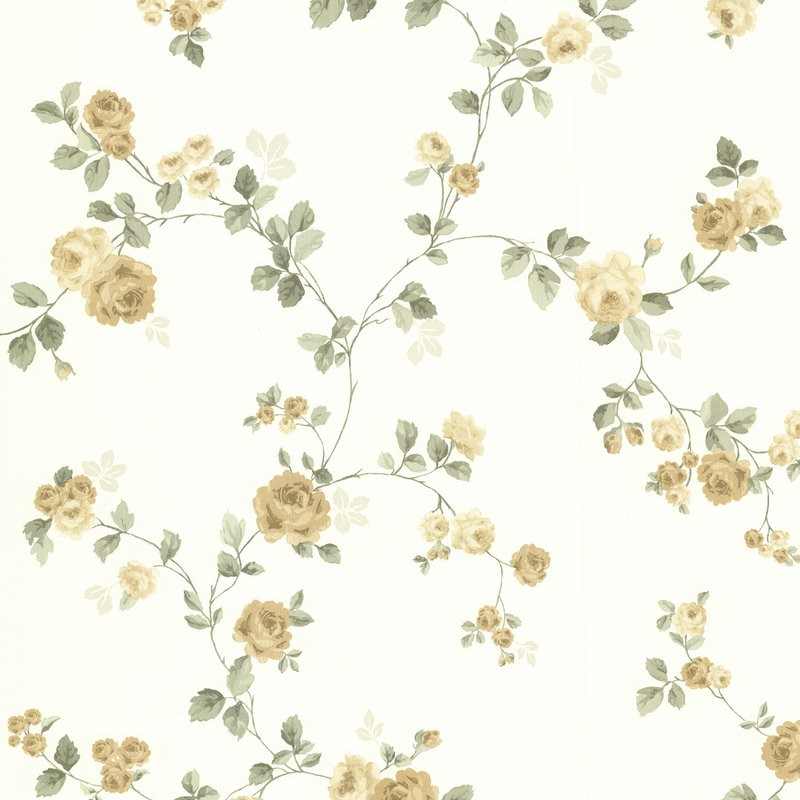 טפט ורדים בגווני בז׳ וירוק על רקע לבן