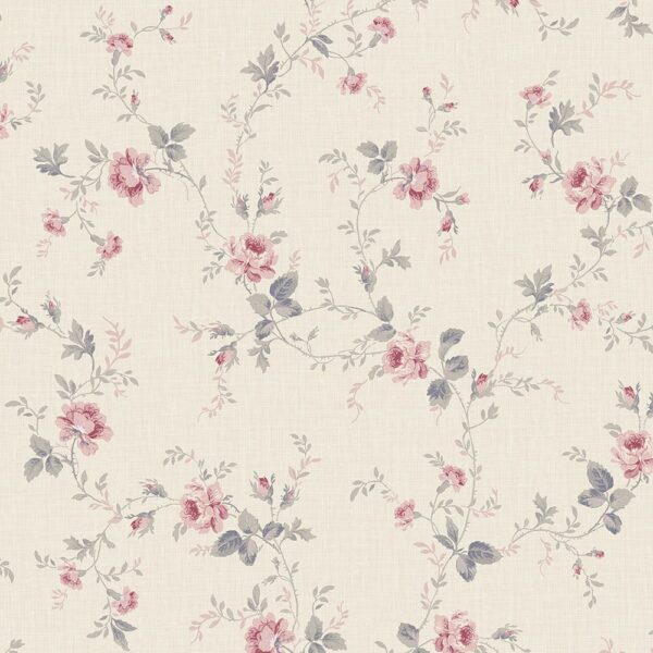 טפט פרחים בגווני בורדו, בז׳ ואפור
