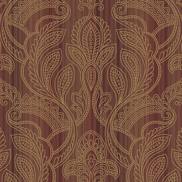 טפט מדליונים בצבע בז' על רקע פסים בגווני בורדו ואפור