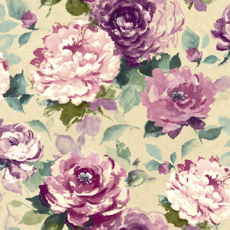 טפט פרחים בגווני סגול, ירוק ובז׳