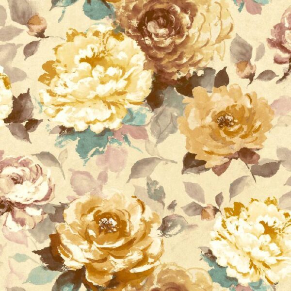 טפט פרחים בגווני צהוב, חום וירוק