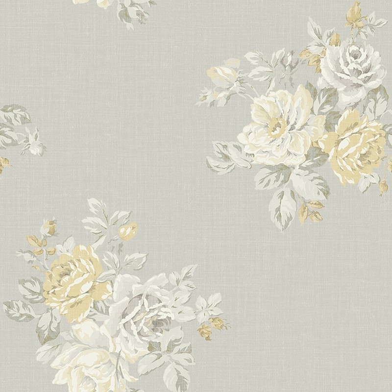 טפט פרחים בגווני אפור וצהוב