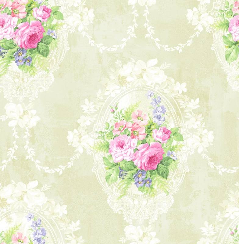 טפט ורדים בגווני ורוד, ירוק וסגול