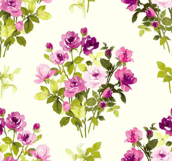 טפט פרחים בגווני ורוד, ירוק וסגול