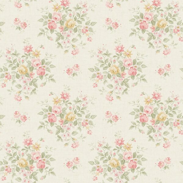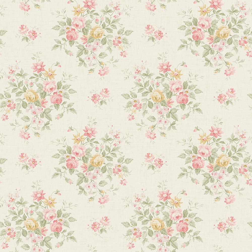 טפט פרחים בגווני ורוד, ירוק ובז׳