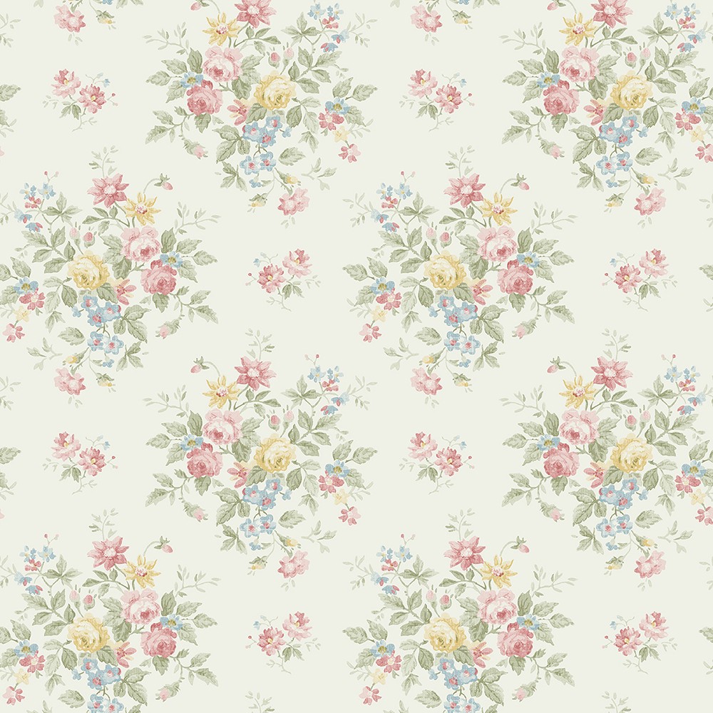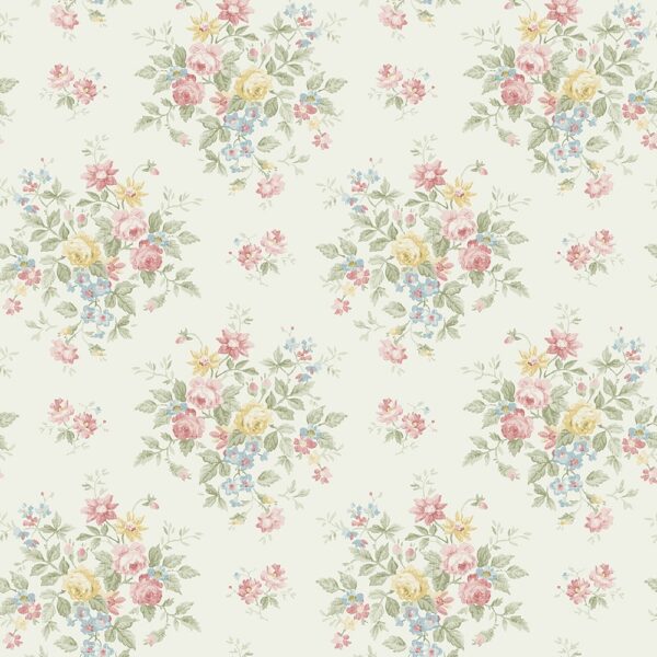 טפט פרחים בגווני ורוד, ירוק ותכלת