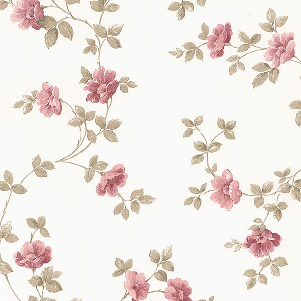 טפט פרחים בגווני בורדו וירוק על רקע לבן