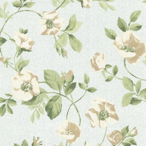 טפט פרחים בגווני תכלת, ירוק ובז׳