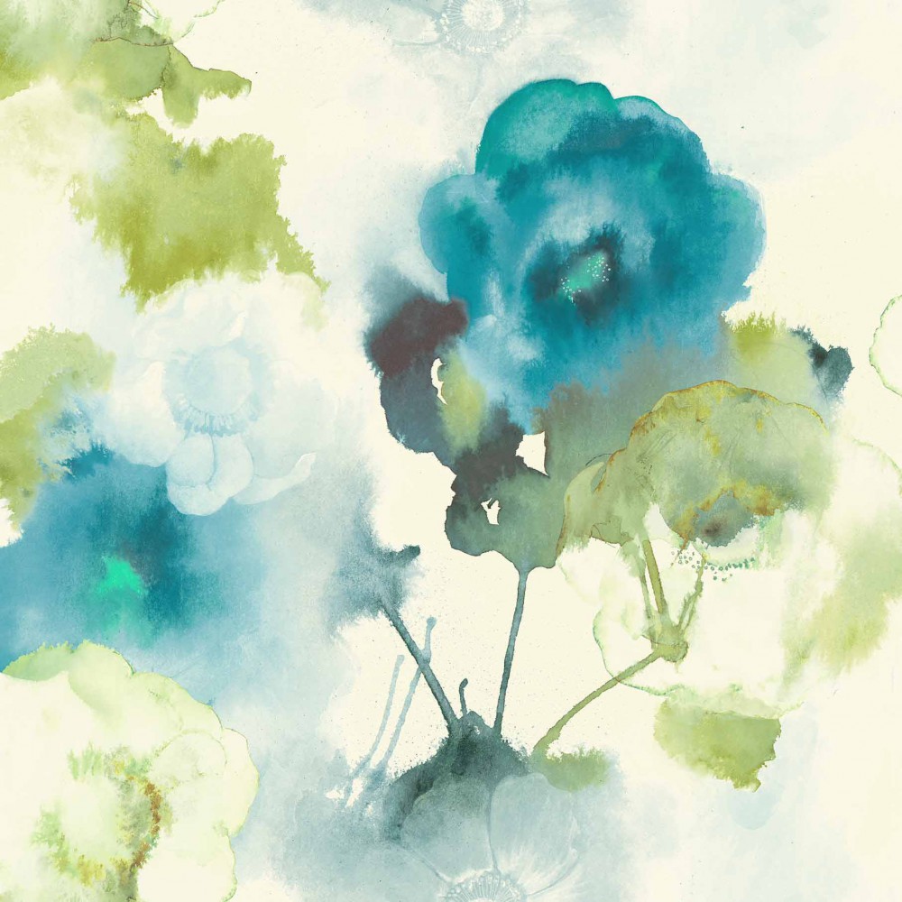 טפט פרחים בגווני כחול וירוק