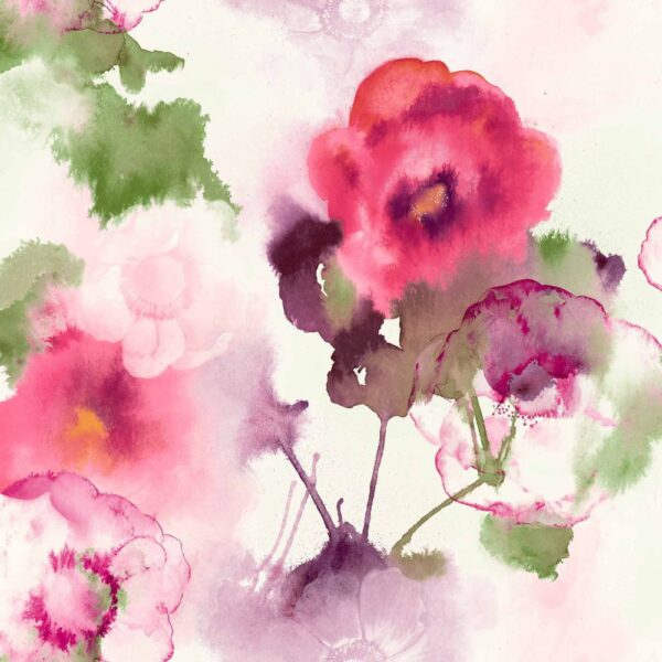 טפט פרחים בגווני ורוד, ירוק וסגול