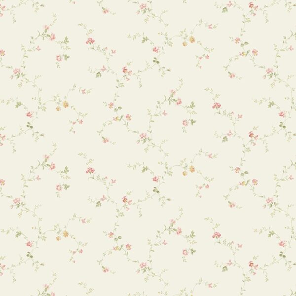 טפט פרחים בגווני ורוד, ירוק ובז׳