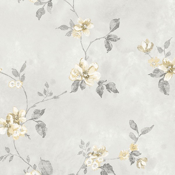 טפט פרחים בגווני אפור וצהוב