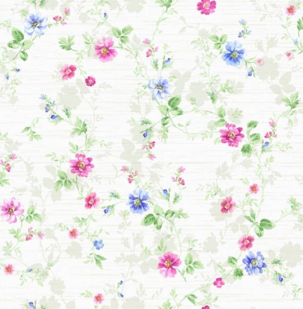 טפט פרחים בגווני אדום, כחול וירוק