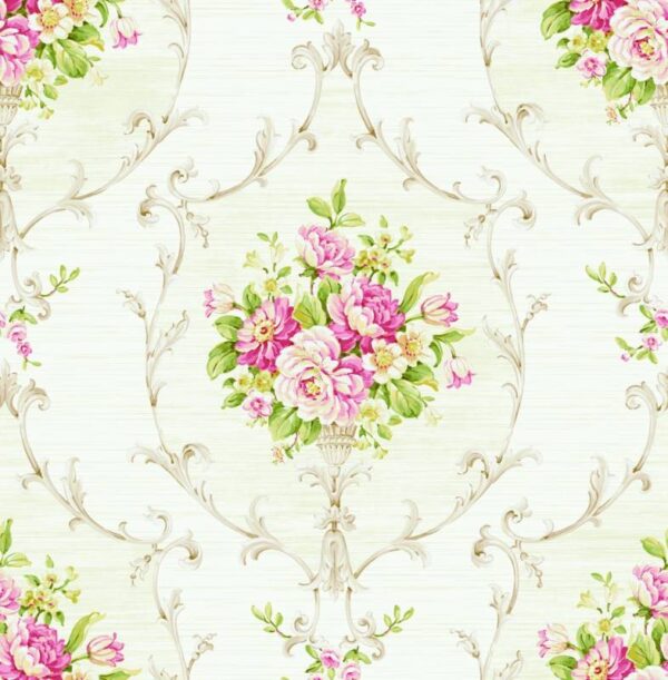 טפט פרחים בגווני ורוד, ירוק ובז'