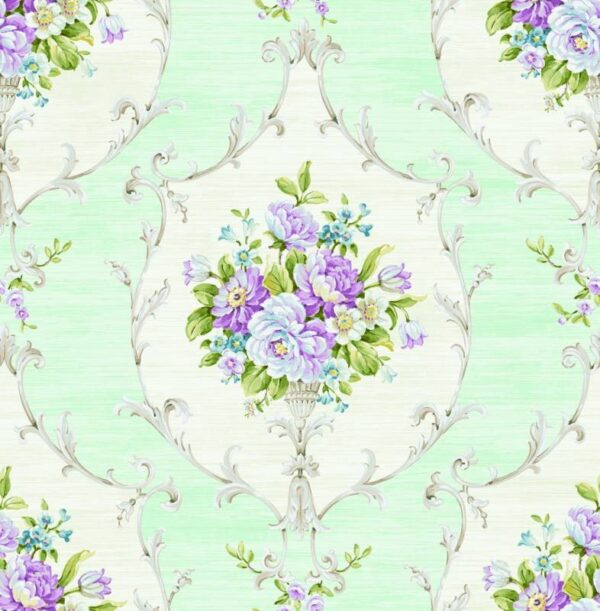 טפט פרחים בגווני תכלת, אפור וסגול