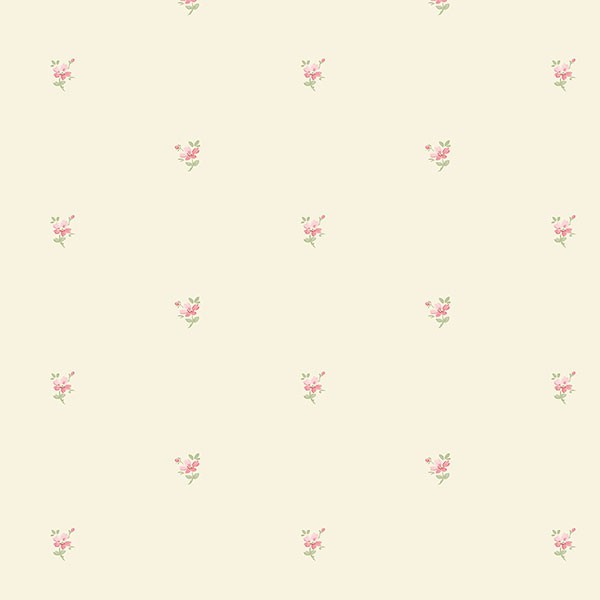 טפט פרחים בגווני ורוד וירוק על רקע בז'