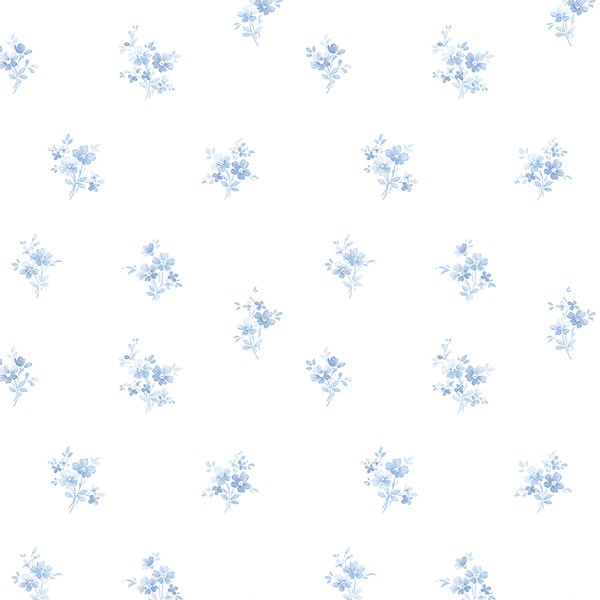 טפט פרחים בגווני כחול על רקע לבן