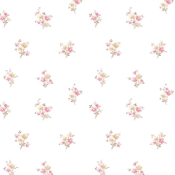טפט פרחים בגווני ורוד על רקע לבן