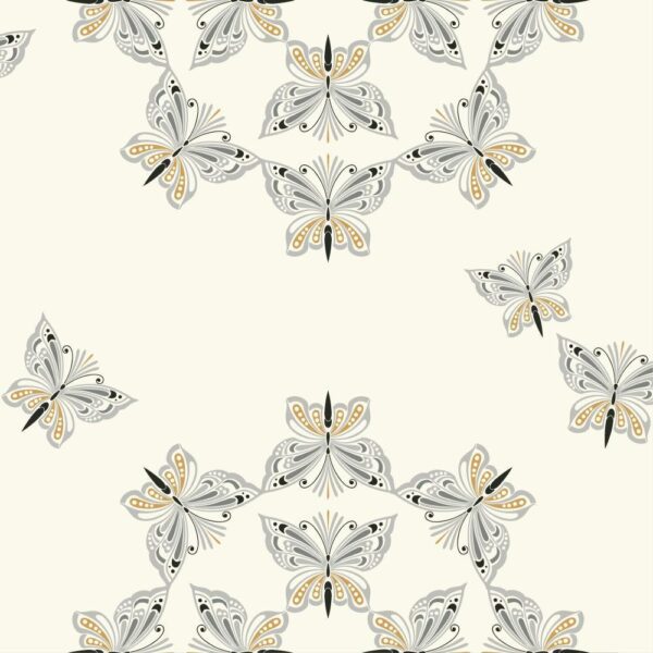 טפט פרפרים בגווני בז׳, חום, אפור ושחור