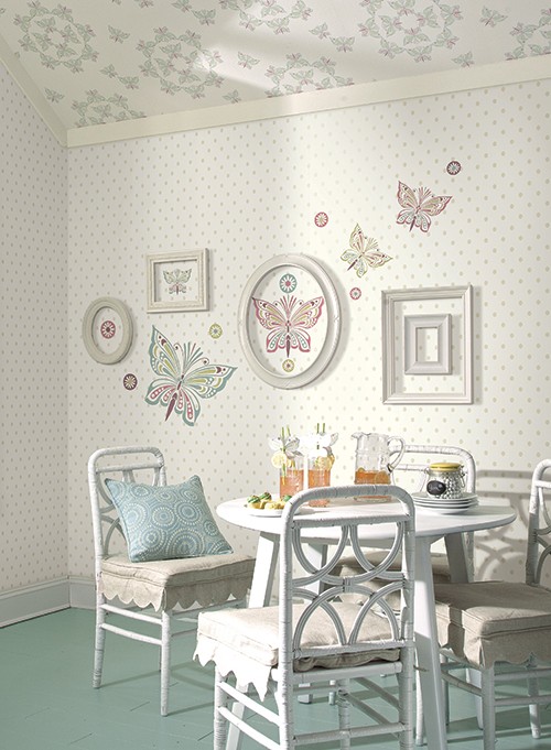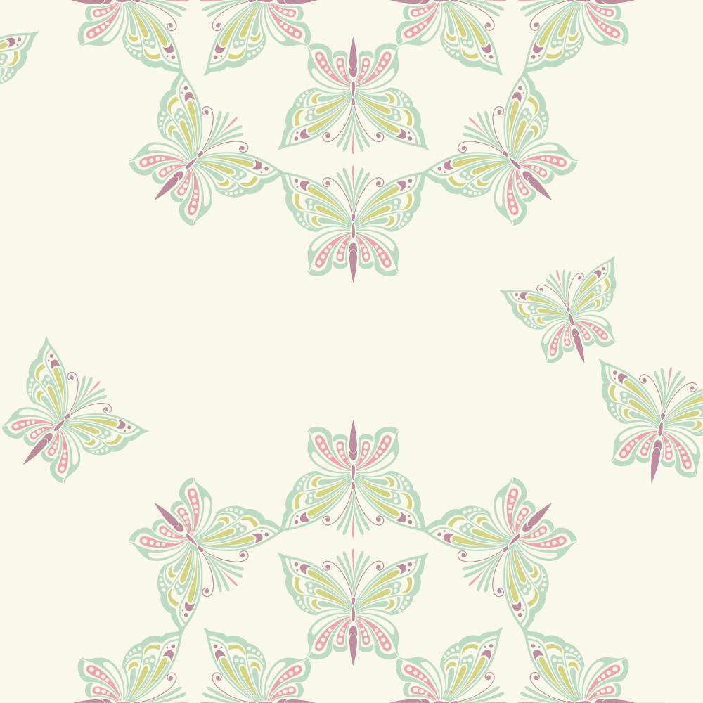 טפט פרפרים בגווני ורוד, ירוק ובז׳