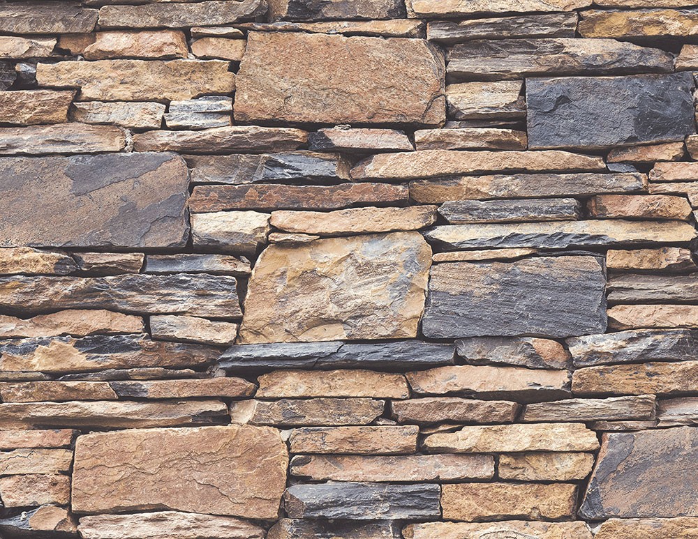 טפט במראה קיר אבנים טבעיות בגווני כחול מעושן, בז' ואפור
