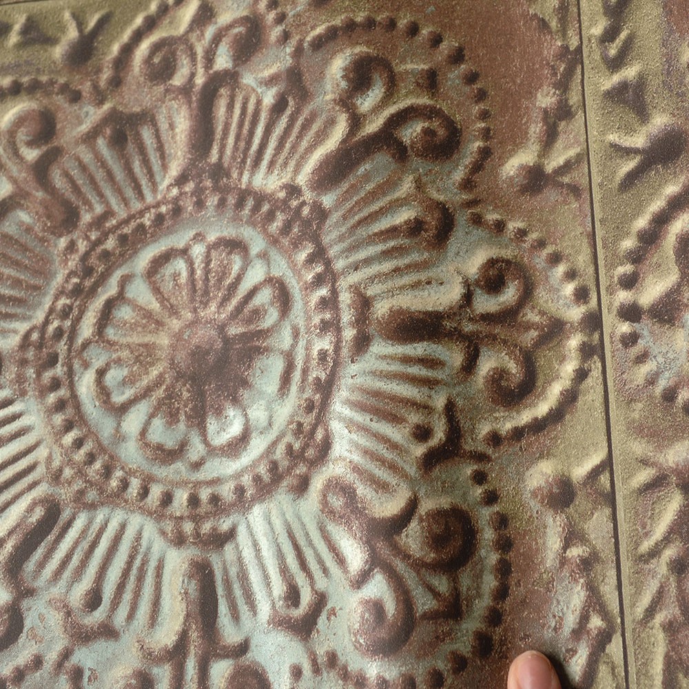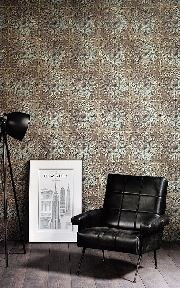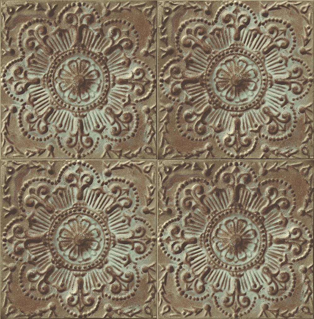 טפט במראה קיר אריחי אבן מסותתים בצבעי טרוקיז, ירקרק וחום מעושן