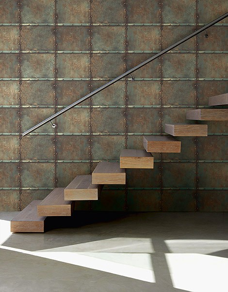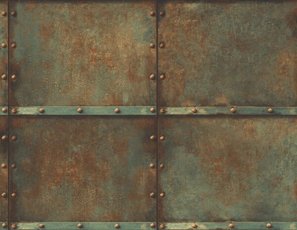 טפט במראה קיר ברזל "ראסטיק" בצבעי נחושת וטורקיז עם פסי מתכת וניטים