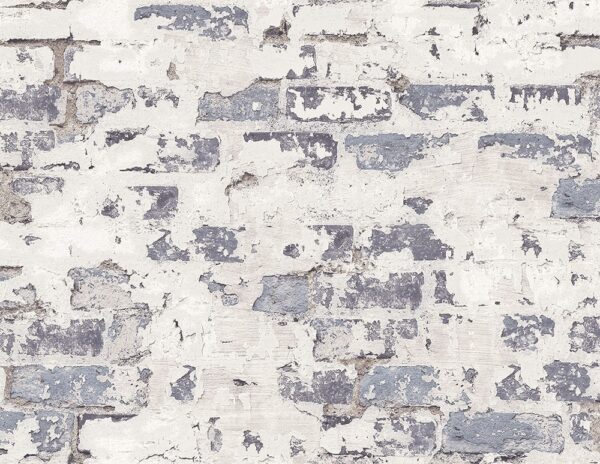 טפט במראה קיר לבנים ישן חשוף חלקית בגווני אפור בהיר, בטון, לבן ולבן מעושן