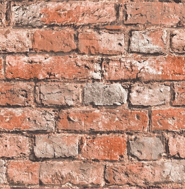 טפט במראה קיר לבנים ישן חשוף חשוף וצבוע בגווני חמרה, כתום ובטון