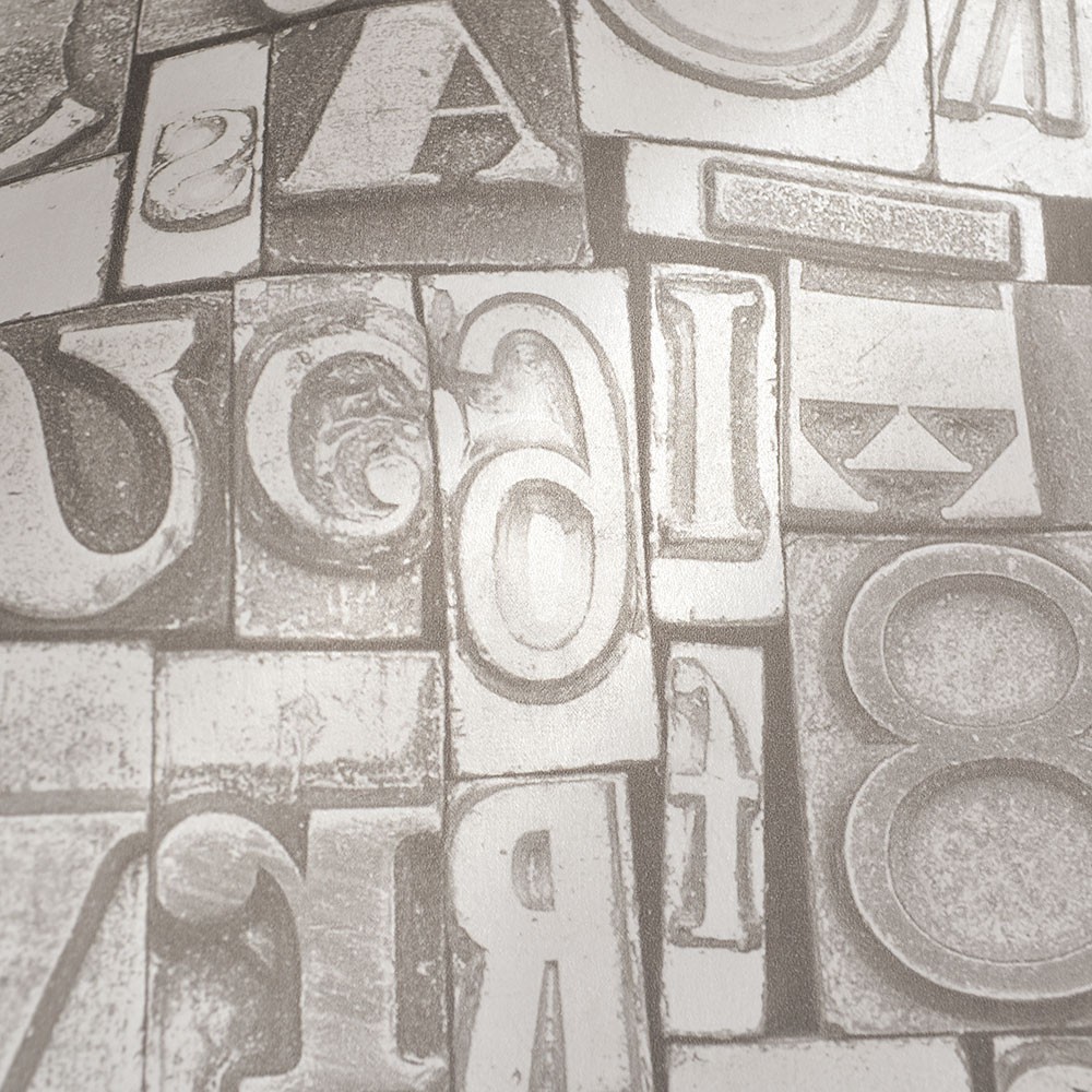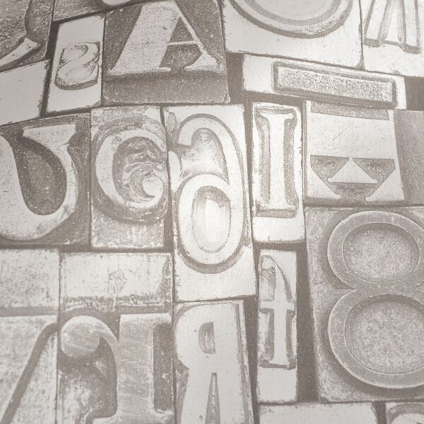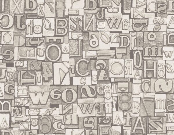 טפט במראה לוחיות קליגרפיה מאויירות "סקטש" בגווני אפור ולבן מעושן
