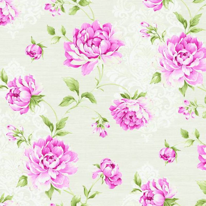 טפט פרחים בגווני ורוד, ירוק ואפור