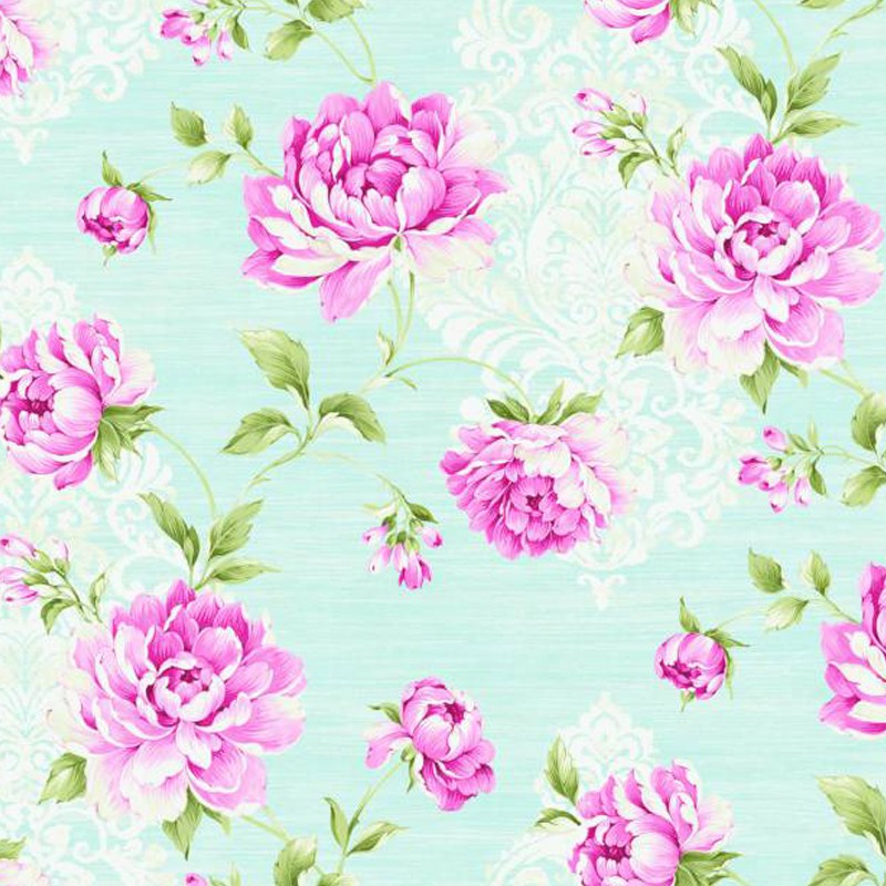 טפט ורדים בגווני ורוד, ירוק ותכלת