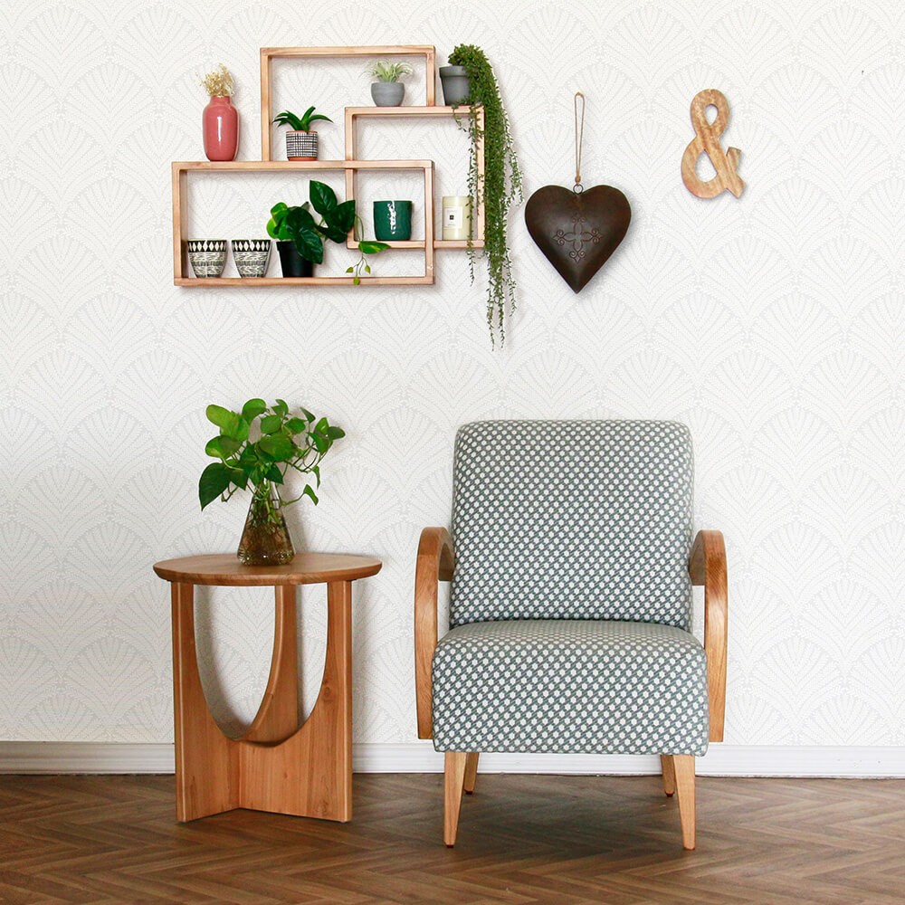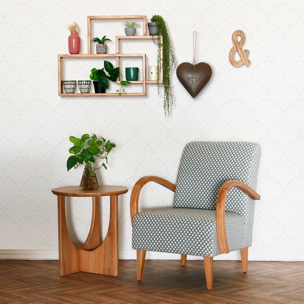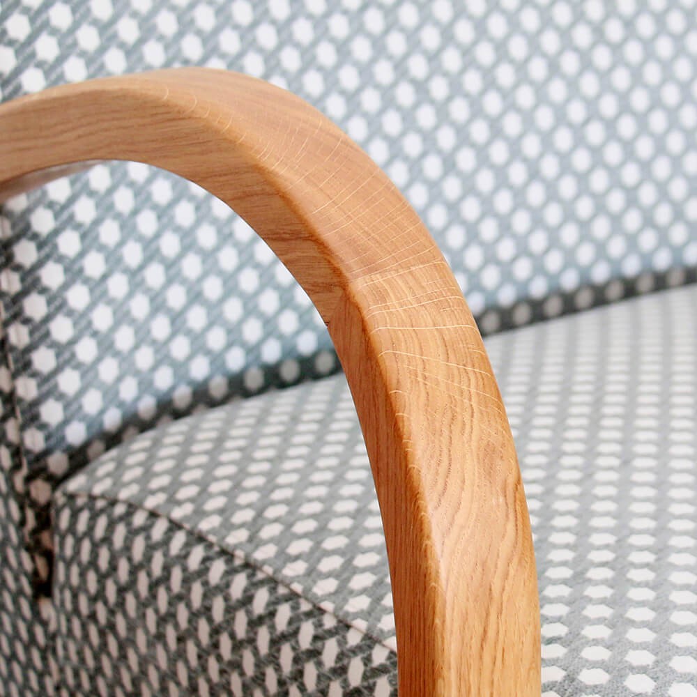 כורסה במראה קלאסי בעלת ידיות עץ מעוגלות. מתקבלת נהדר בבדים מודפסים, פרחוניים וגאומטריים, ומשתלבת נפלא לצד הדום עגול