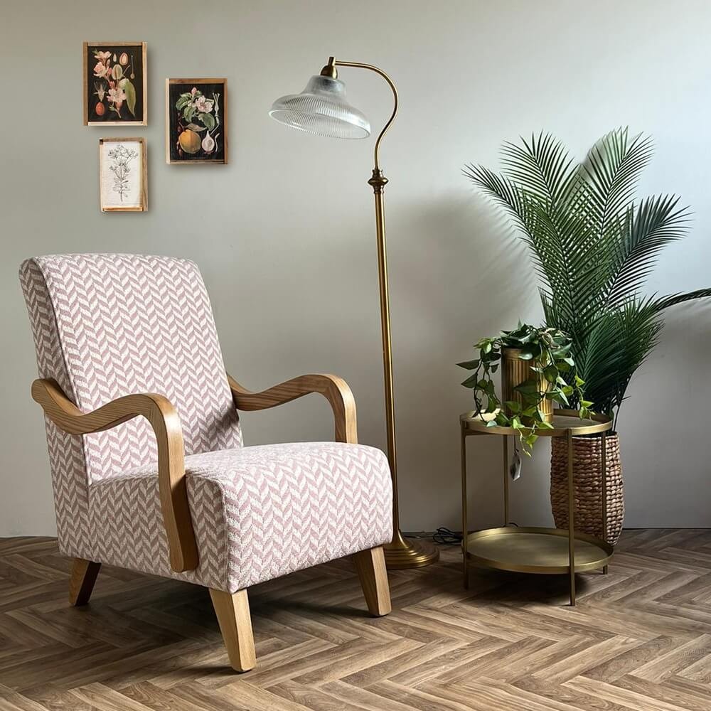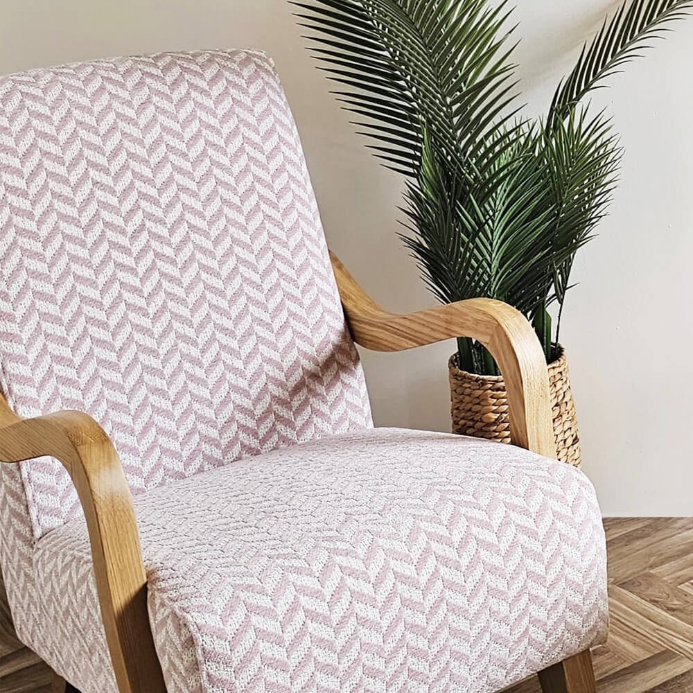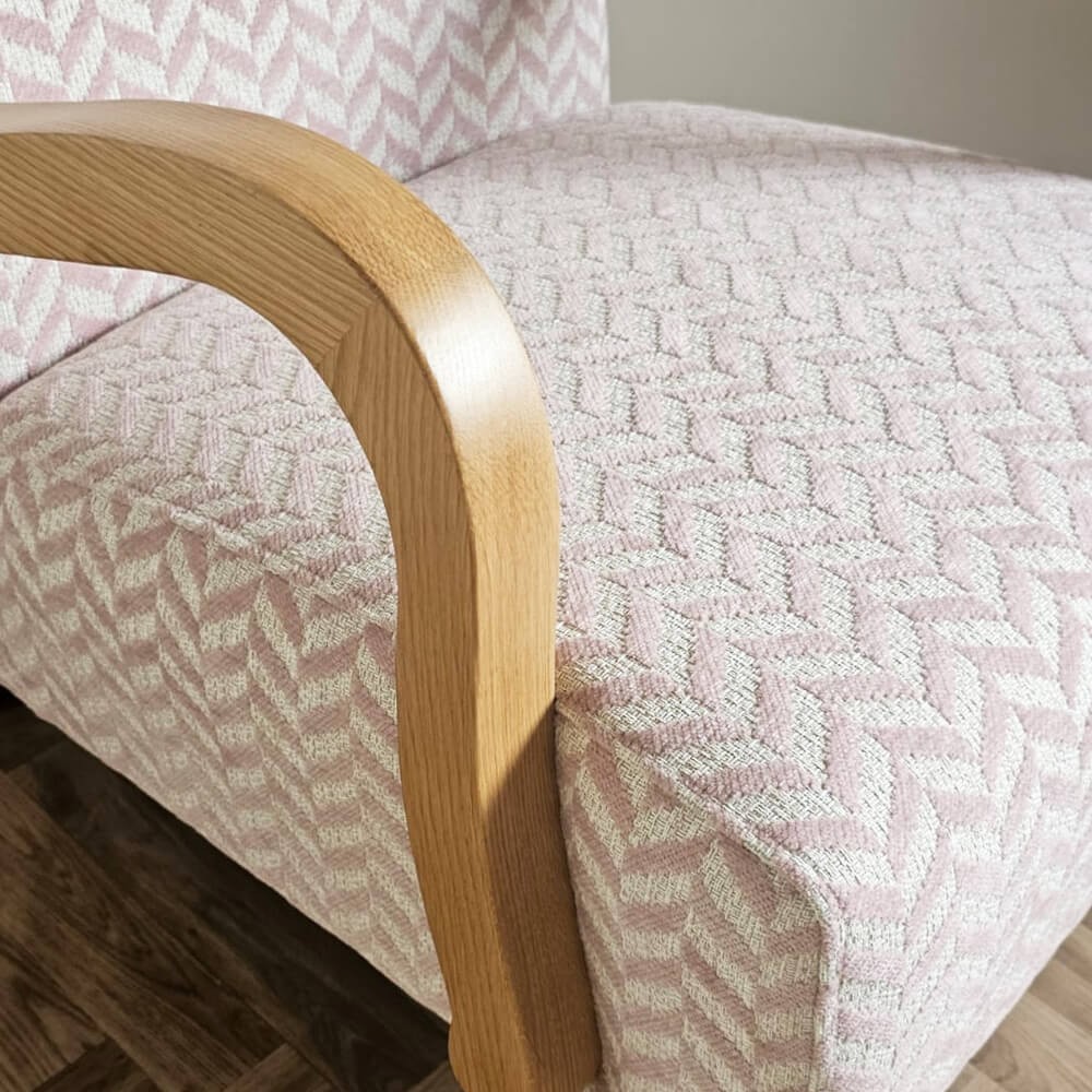 כורסה מעוצבת אלזה, מרופדת בד איכותי, בעלת משענות יד מעוגלות