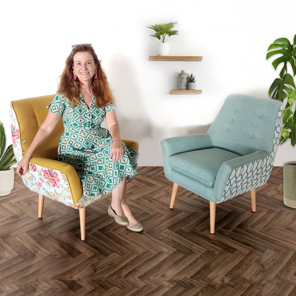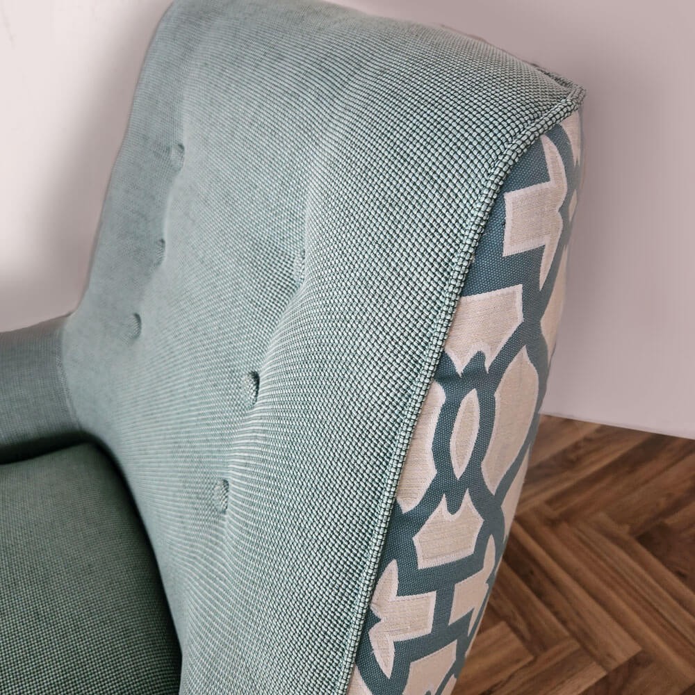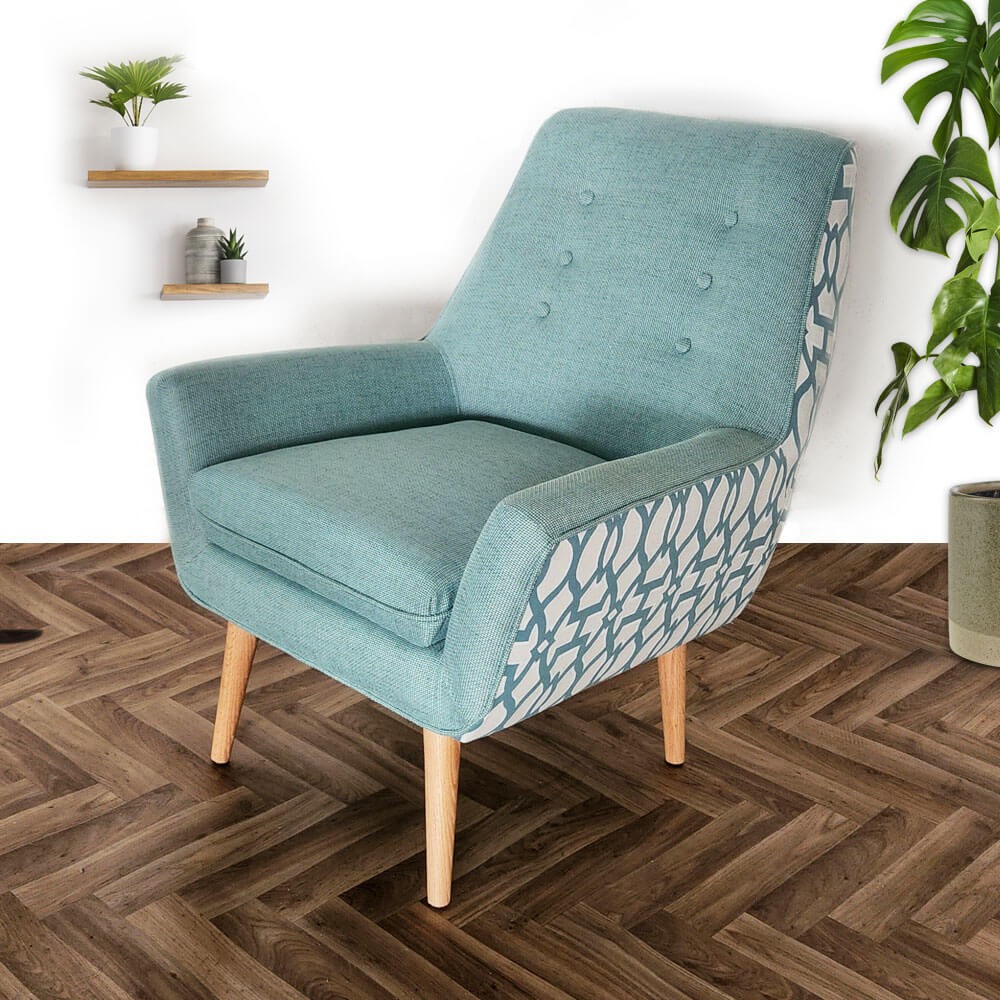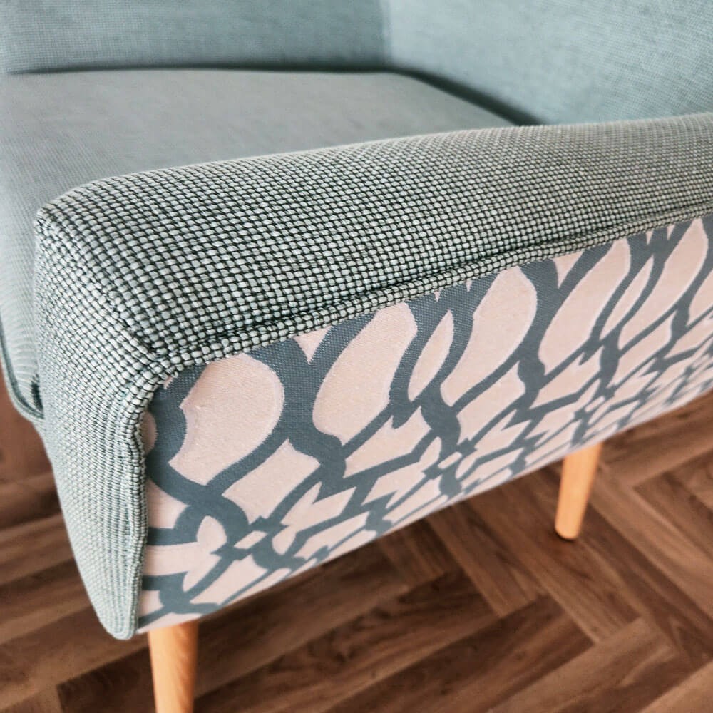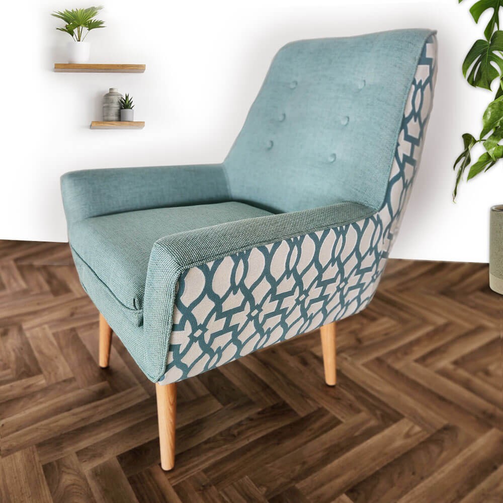 כורסה מעוצבת גניה בעיצוב רטרו ובריפוד משולב שני בדים