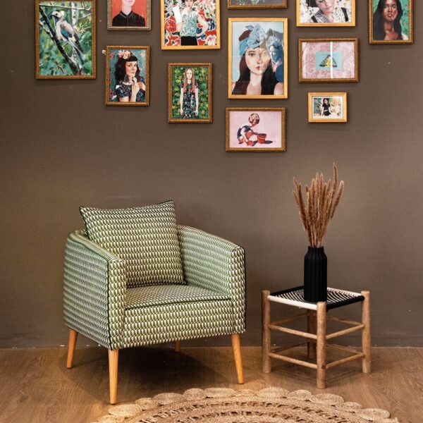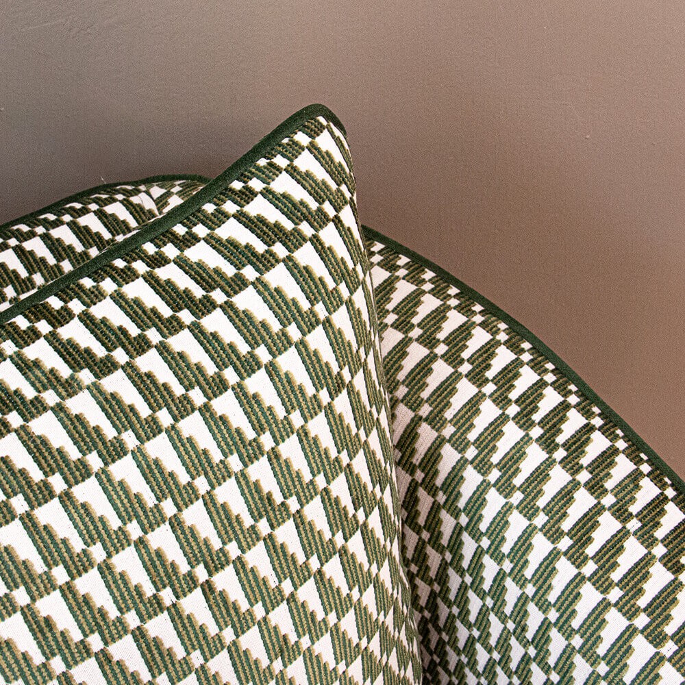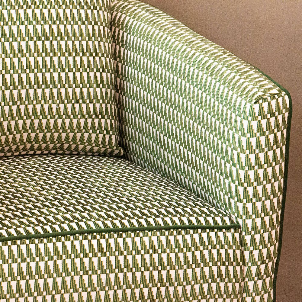 לכורסה כרית גב אותה ניתן לרפד בבד שונה ליצירת עניין.