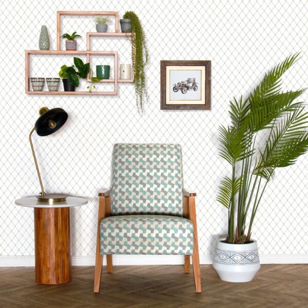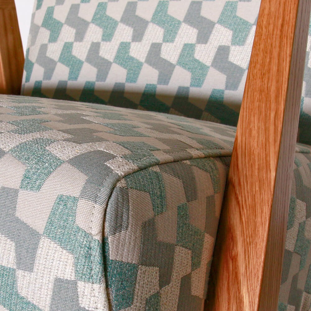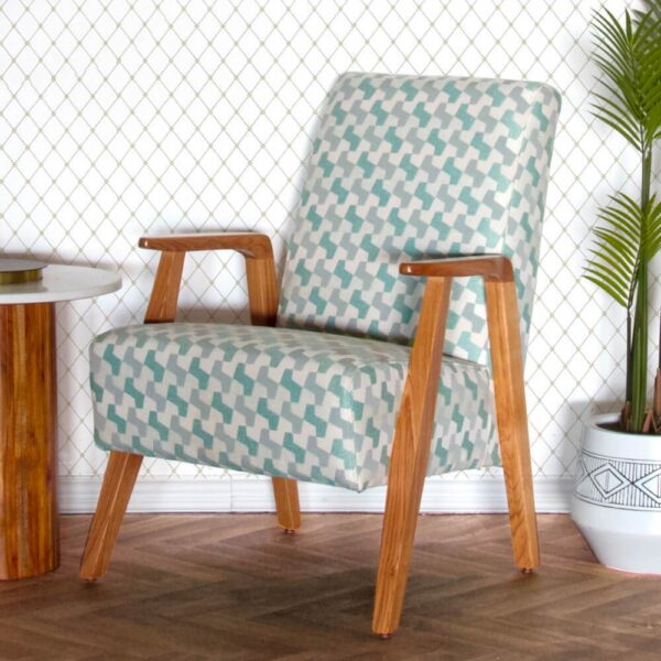 כורסה מעוצבת עדי, מרופדת בד בדוגמה גאומטרית