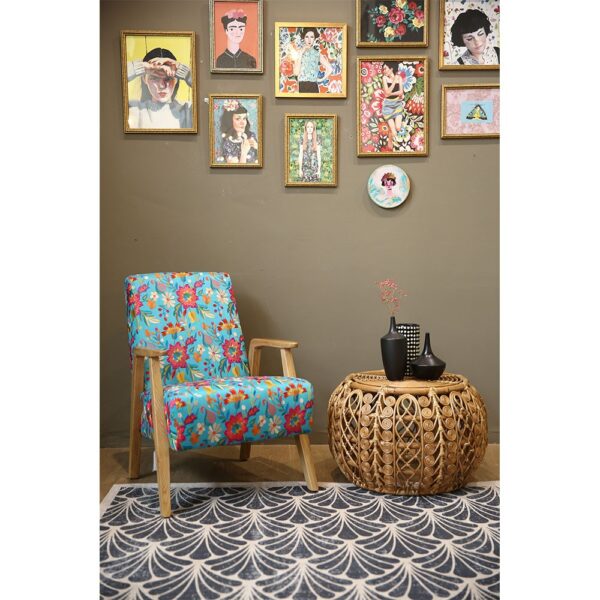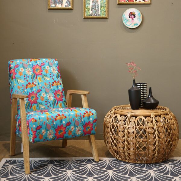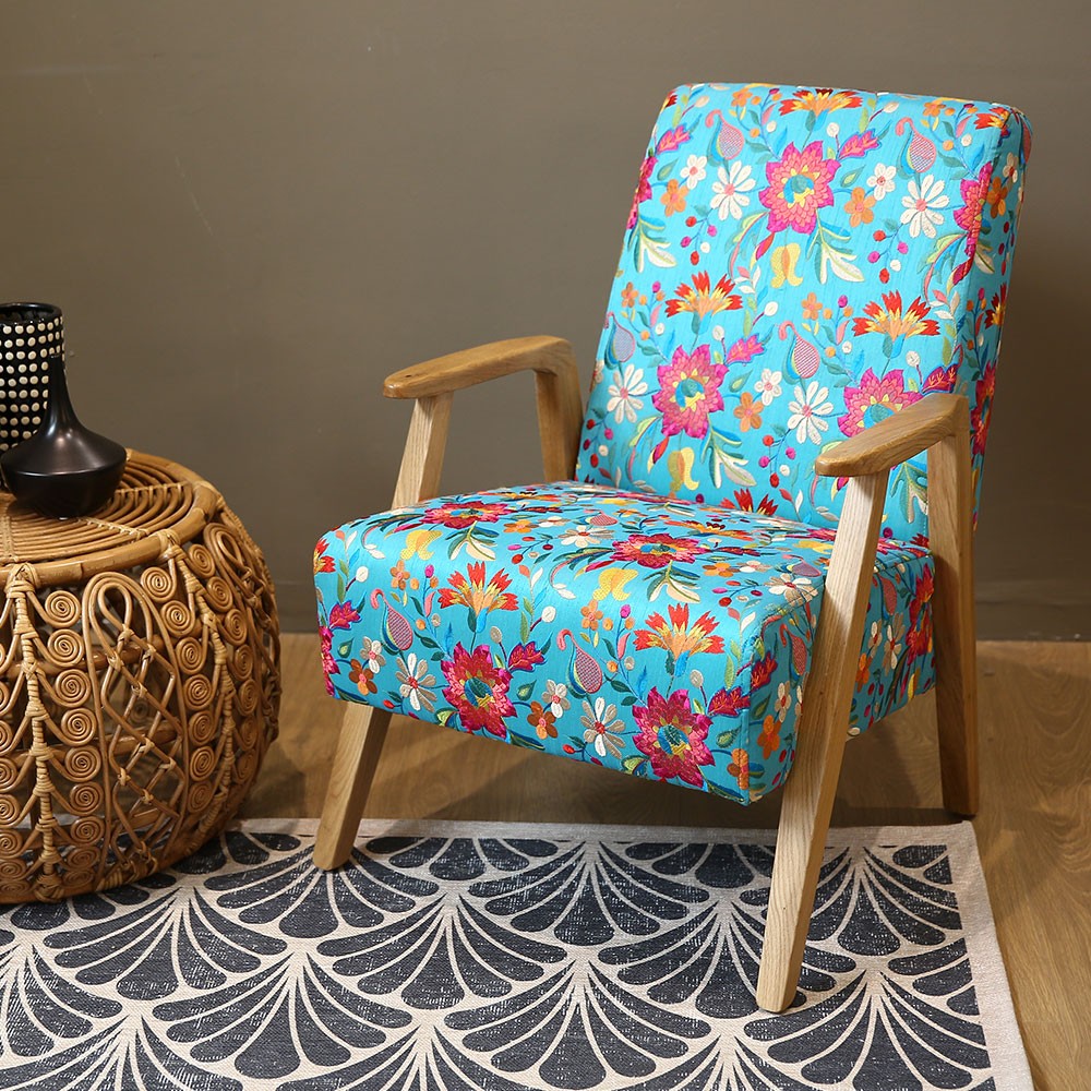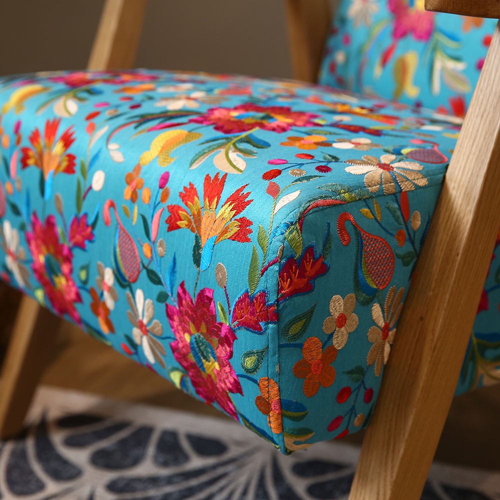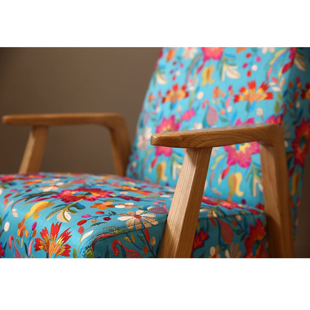 כורסה מעוצבת עדי, מרופדת בד רקום בדוגמת פרחים