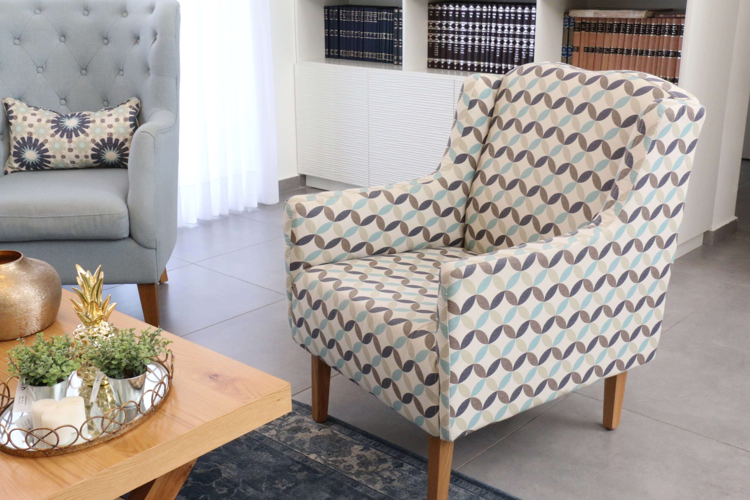 כורסת פאני מעוצבת העדינה בעלת קווים מעוגלים וריפוד מדליונים אלגנטי.