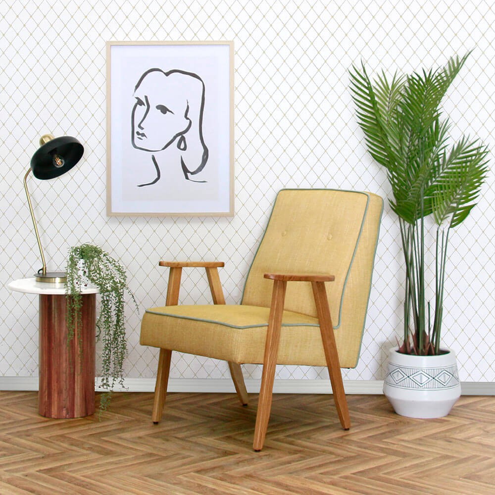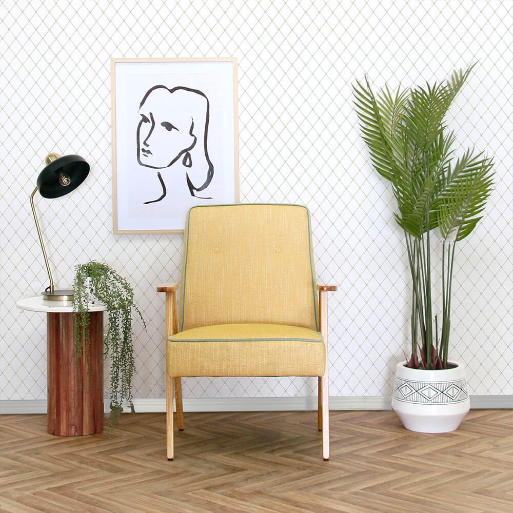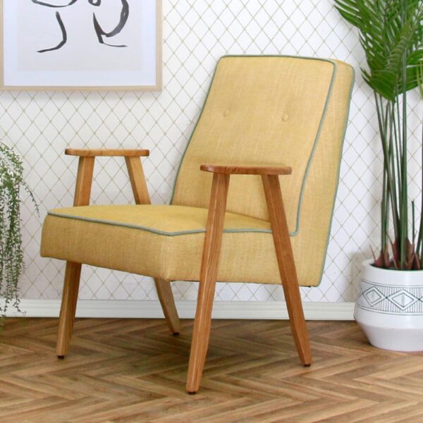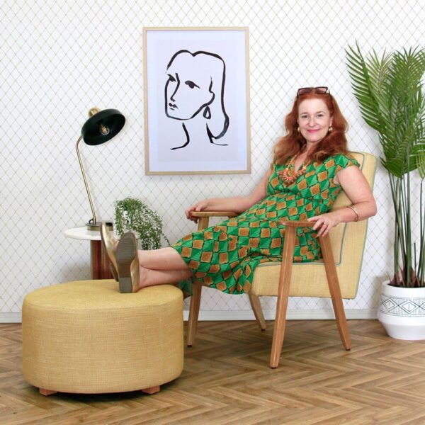 כורסה מעוצבת צילה, מרופדת בד איכותי, בעלת שני כפתורים בחלקה העליון